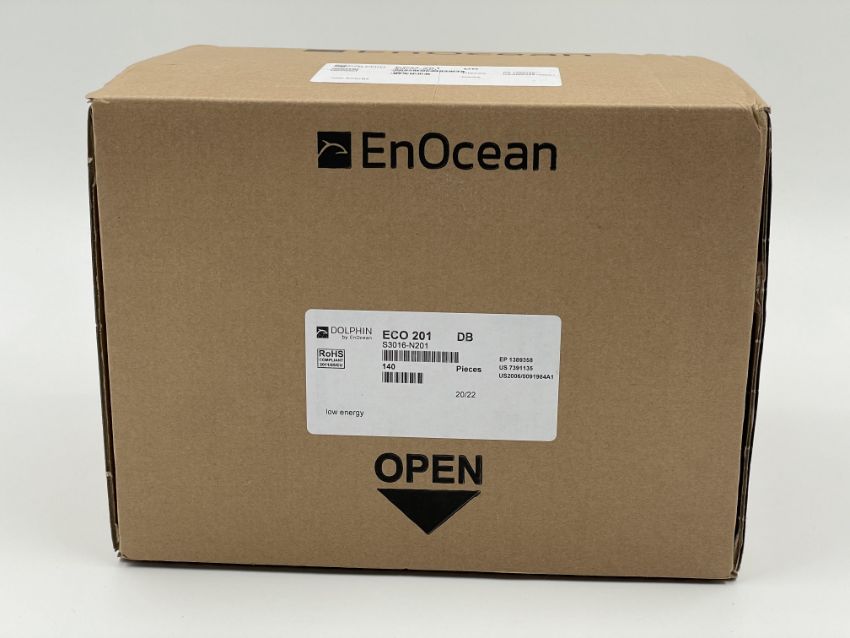 A box of 140 as new EnOcean Dolphin S3016-N201 ECO 200 Series Energy Converters.