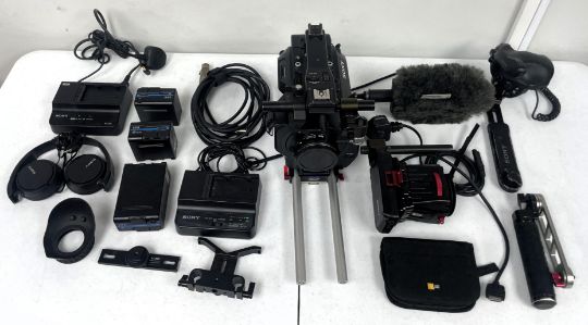 A pre-owned Sony FX7 XDCAM 4K Super 35 Camcorder (PXW-FSX7) with accessories (Camcorder powers on, not tested further. Viewing is advised, lot sold as seen).