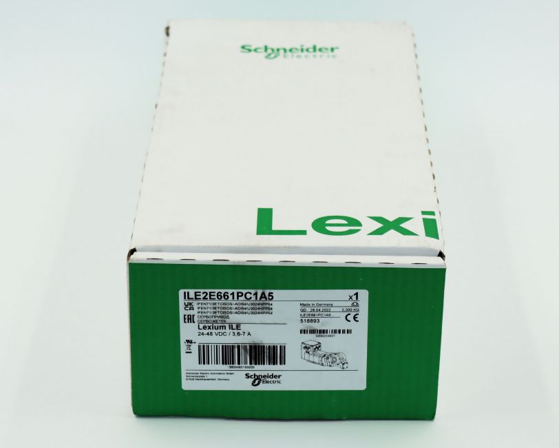 A boxed as new Schneider Electric ILE2E661PC1A5 Lexium ILE 24-48 VDC / 3.6-7A Brushless DC Motor (Box opened).