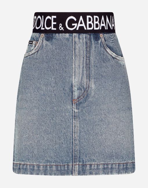 Dolce & Gabbana Short Denim Skirt with Branded Waistband, Size IT 44.