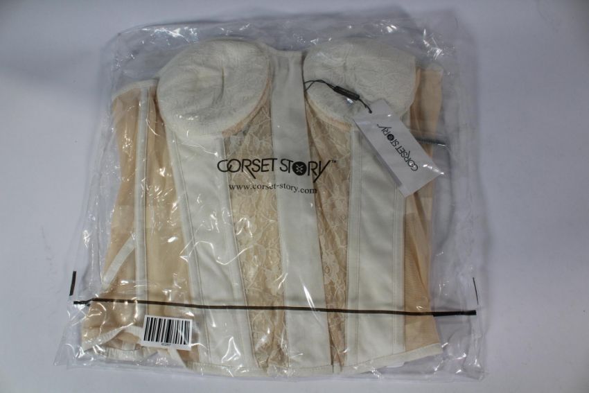 Corset Story Adelia Whisper Viscose and Lace Overbust Corset with Cups in White, Size UK 34.