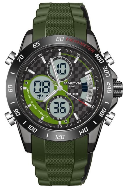 Martyn Line 3025 Green Multi-Function Rubber Watch (Stock image).
