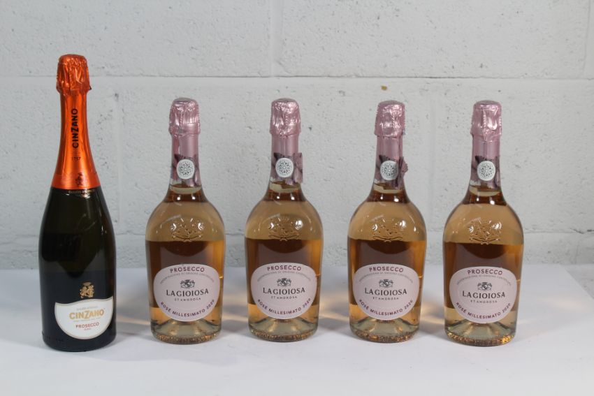 Four La Gioiosa Rose Millesimato 2020 Brut Fizzy Wine 4 x 750ml and Cinzano Prosecco Dry Sparkling Wine 750ml.