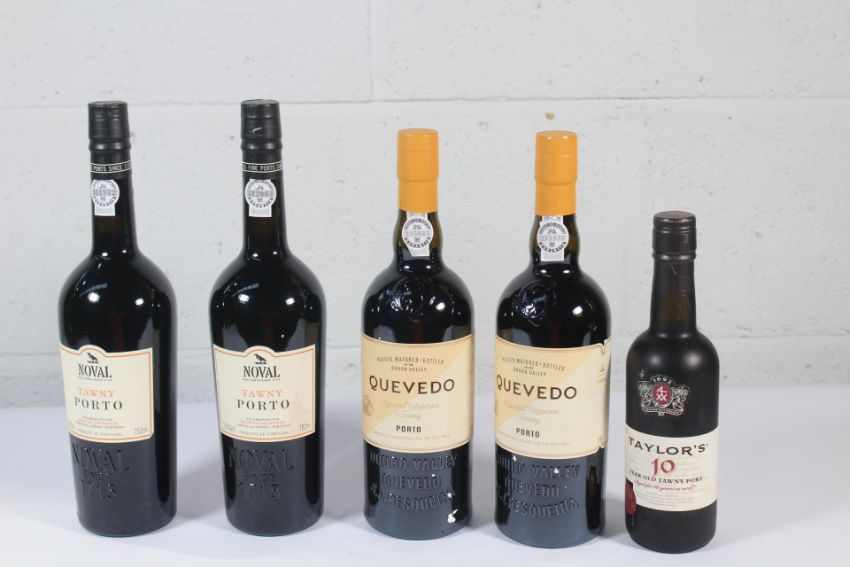 Two Noval Tawny Porto 2 x 750ml, Two Quevedo Special Reserve Tawny Porto 2 x 750ml and one Taylor's 10 Year Old Tawny Port 375ml.