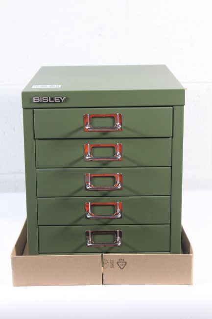 Bisley Five Drawer Desktop Green Filling Cabinet.