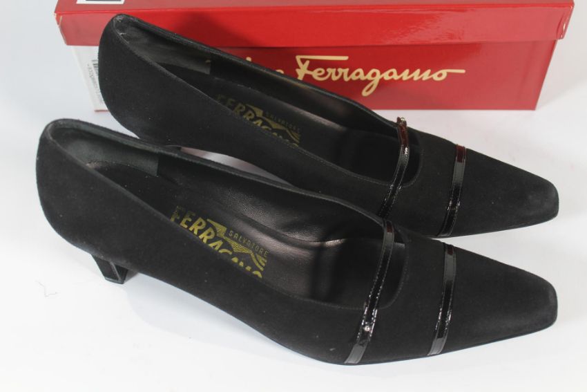 A pair of women's pre-owned Salvatore Ferragamo Suede Shoes - Black (9 AA).