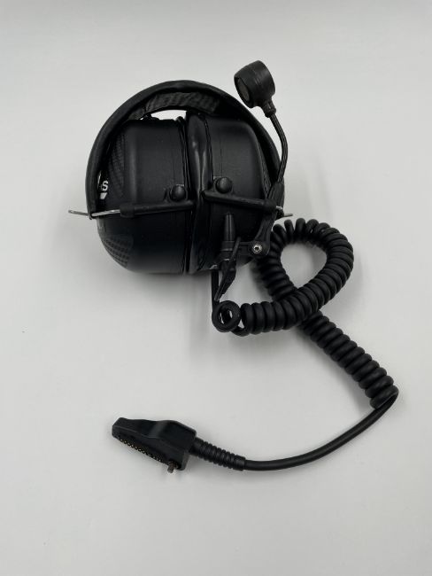 A pre-owned MRTC Wired Pit Crew Headset with storage bag (Untested, sold as seen).