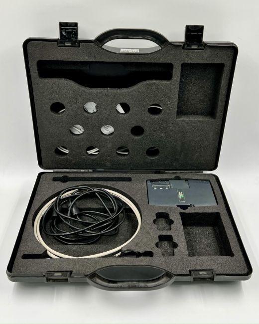 A pre-owned Schneider Electric TRV00911 USB Maintenance Interface with cables in travel case (Untested, sold as seen).