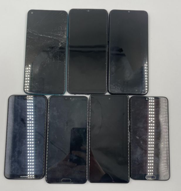 Seven assorted pre-owned smartphones sold for parts (All handsets account locked/lost mode/remote management locked and/or damaged/faulty. All items sold as seen, for parts only).