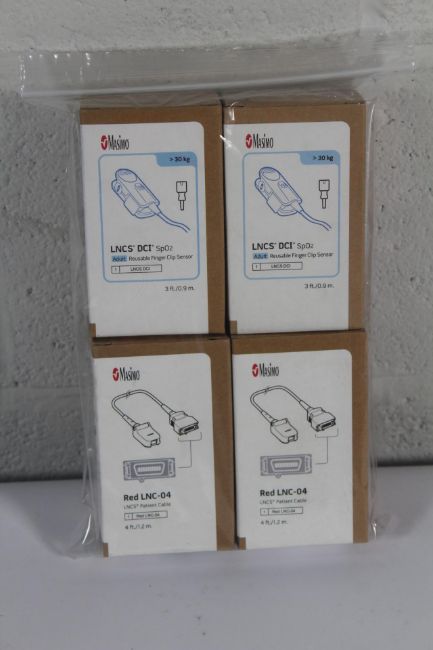 Two Masimo LNCS DCI Adult Reusable Multiuse Sensor Original (REF: 1863) and Two Masimo Red LNC-04 Patient Cable (REF: 2055). As New.