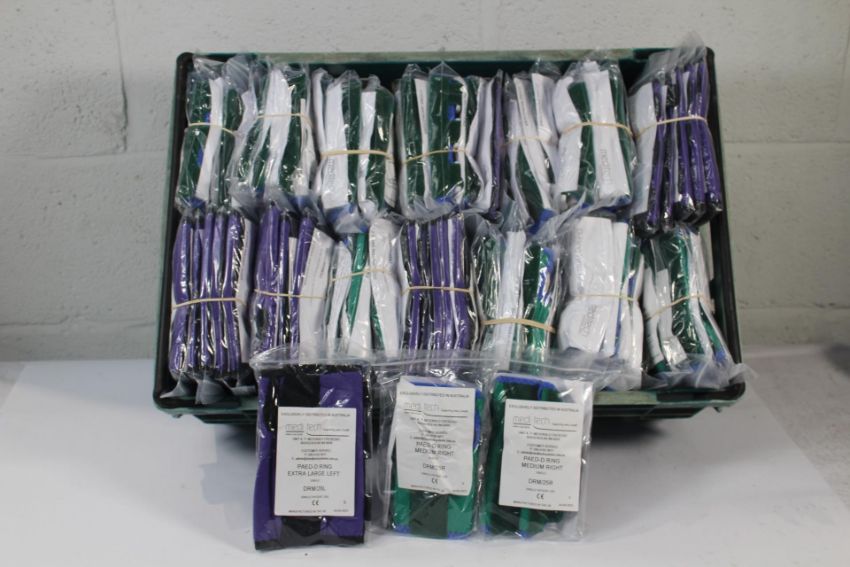 Approximately 100 Medi Tech Systems Paed-D Ring Wrist Braces, Assorted Sizes and Handedness. As New.