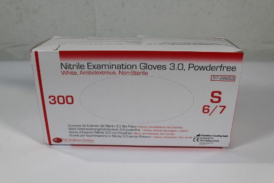 Twenty Boxes of 300 Nitrile Examination Gloves 3.0, Powderfree - S (6/7) (White, Ambidextrous, Non-Sterile).