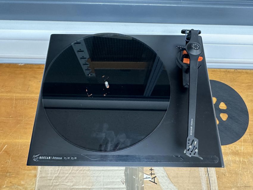 Pre-owned Roksan Atessa Turntable (Powers on, turntable turns. Some cosmetic damage. Sold as seen).
