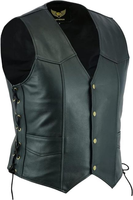 Leatherick London Black Leather Jacket with Laces, Size M (REF: CSSplit).