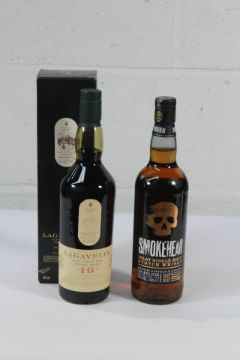 Lagavulin Islay Single Malt 16yr Scotch Whisky 700ml, Smokehead Islay Single Malt Scotch Whisky 700ml.