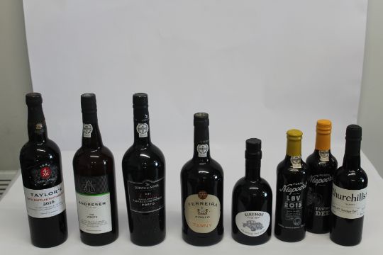 Eight Assorted Port's To Include Taylors LBT 2016 750ml, Ferreira Tawny 750ml, Quinta Do Noval 2016 LBV 750ml, Andresen Fine White 750ml, Niepoort LBV 2015/ Tawny 2 x 375ml, Elkehof Cape Ruby 375ml.