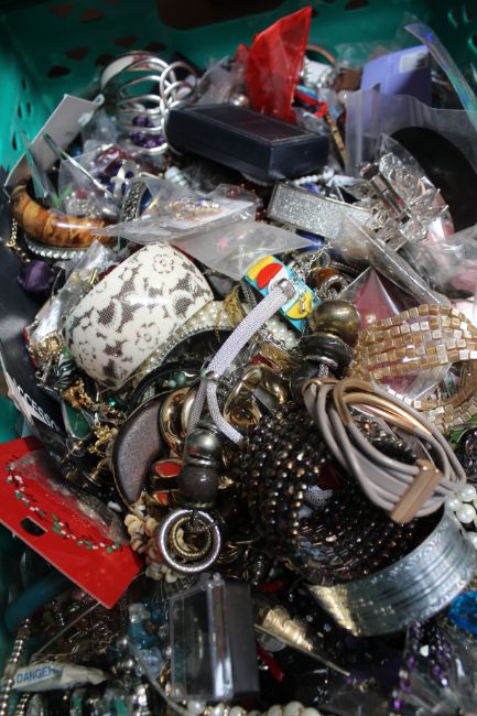 A Crate of Assorted Pre-owned/As New Costume Jewellery To Include Necklaces, Earrings, Bangles/Bracelets Weight 15kg (Crate Not Included).