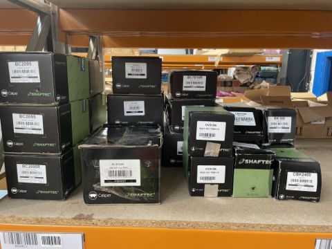 Thirteen Shaftec Brake Calipers (BC - 2095R x 4, 2095 x 2, 9825, 21464, 2066R, 8742R, 7014R,8819R and 8134R), Two CV Joints CV313N and Six Bootkits (BK105 x 3, CBK3000 x 2 and CBK2400).