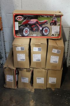 Eight Falk Laufrad Baby Moto Dakar Moto and Quads, Black/Red, Baby. As New. Boxes Opened.