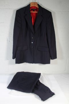 A pre-owned Escada Suit (woman's) - Blue/Red Pin-Stripe (44)