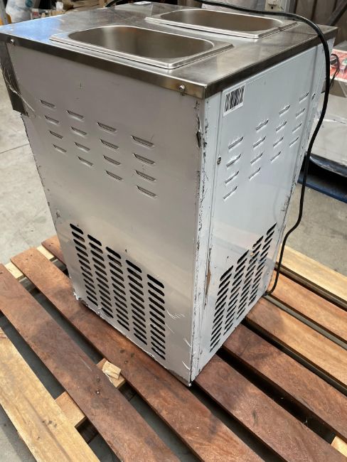 Commercial 18L Ice Cream Machine Frozen Yogurt Ice Cream Maker, Untested. Some scratches on the sides. Lids and bottom tray missing.