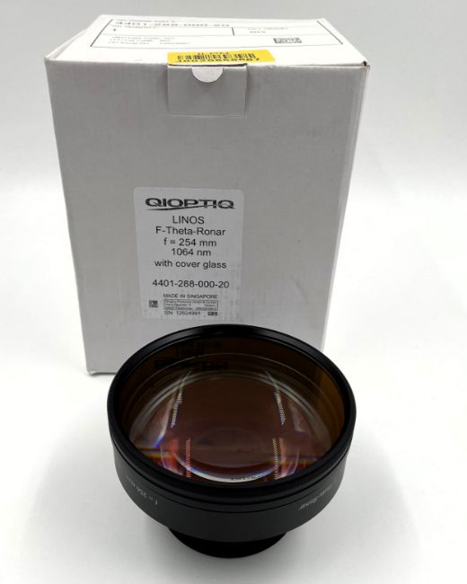 An as new LINOS f.254mm 1064nm F-Theta-Ronar Lens (P/N: 4401-288-000-20) (Boxed).
