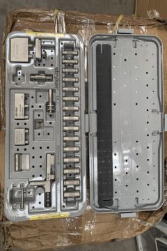 Stryker Muscle Removal Board with various Instruments. Pre-owned, damage to bottom of casing. (Three parts missing). Sold as seen.
