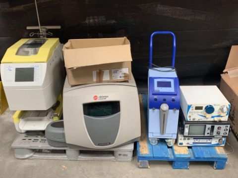 Twelve Assorted Medical Instruments to include A Advanced Technologies Criticool Thermal Regulation System 200-00136, An Ellex Eye Cubed Ophthalmic Ultrasound, A Conmed D3000 Advantage Drive System, A 24K Irrigation Pump Console, A FRESENIUS HEMOCARE C.A.T.S. Continuous Auto Transfusion System, A BECKMAN COULTER CYTOMICS FC 500 Flow Cytometer and Six Pari Junior Boy SX Nebuliser Type 085. All Items are Pre-owned and Untested. Items are Sold as Seen.