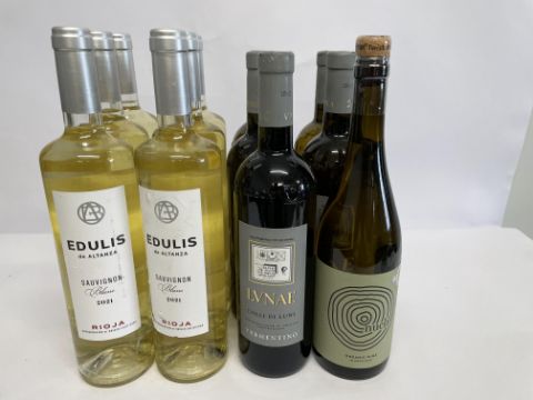 Six Edulis de Altanza Sauvignon Blanc 2021 (13%), Five Colli di Luni Vermentino DOC 'Grey Label' 2021 (12.5%) and One Nucli Blanco 2020 (12%) - 750ml.