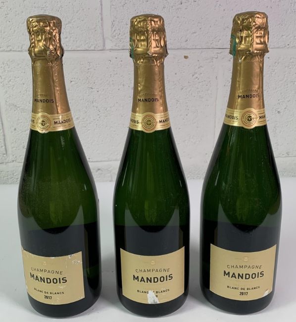 Three Mandois Blanc De Blanc Premier Cru 2017 Champagne 3 x 750ml, (Labels slightly distressed).