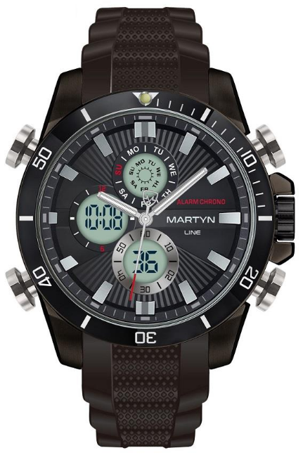 An as new Martyn Line 3011 Black Multi-Function Rubber Watch (Stock Image).