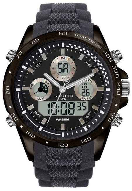 An as new Martyn Line 2919B Black Multi-Function Rubber Watch (Stock Image).