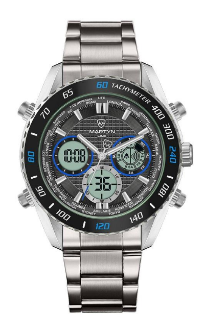 An as new Martyn Line 3038 Blue Multi-function Steel Watch (Stock Image).