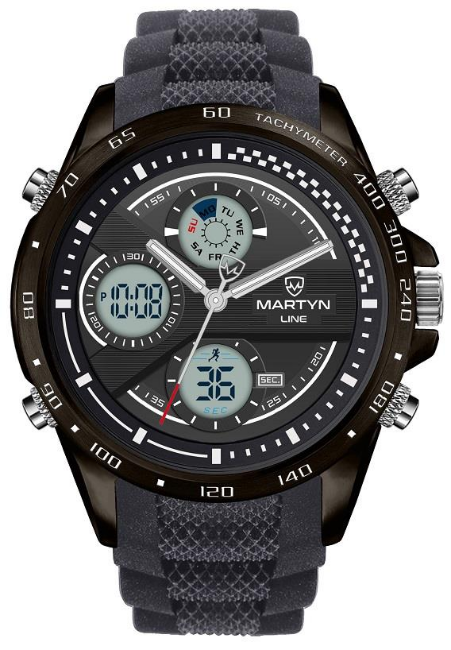 An as new Martyn Line 2958 Black Multi-Function Rubber Watch (Stock Image).