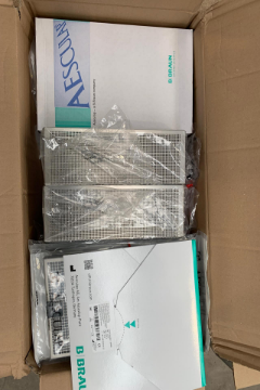 Box of assorted B.Braun items to include Reusable Filters, Dental Containers with Lids. (MN: JF289R, JK091, JF282R, JN096) As New.