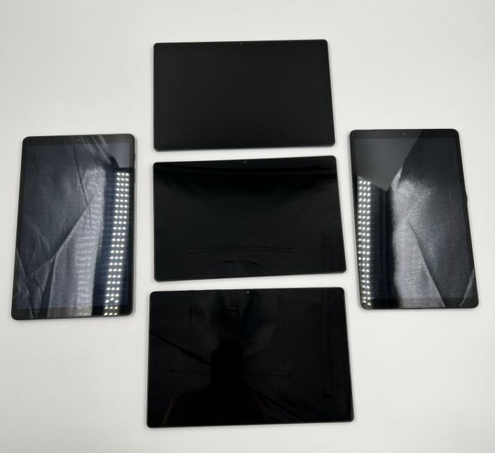 Five assorted Samsung Tablet sold for parts (All handsets account locked/Lost Mode/Remote management locked and/or damaged/faulty. All items sold as seen, for parts only).