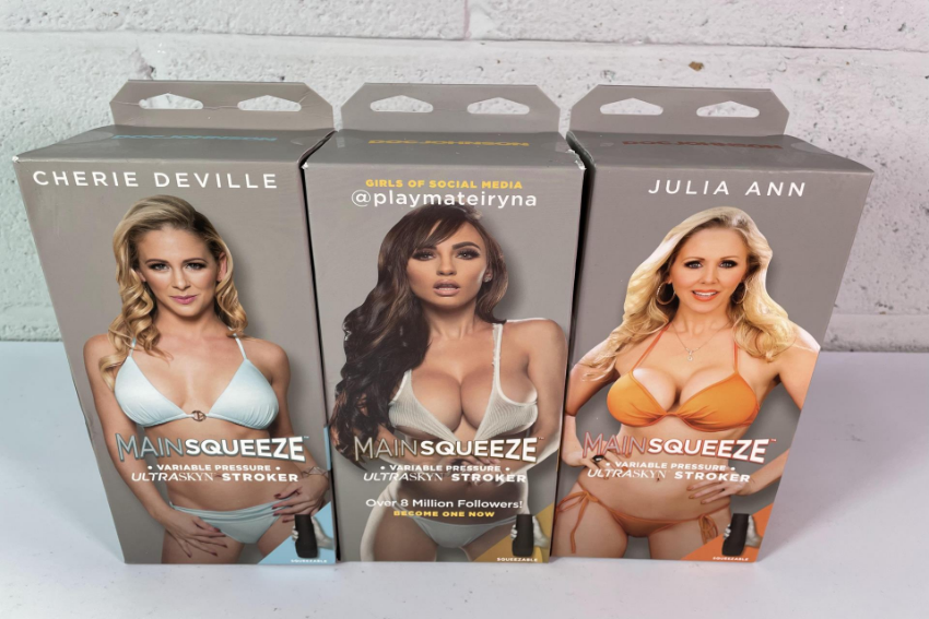 Three Doc Johnson Main Squeeze Variable Pressure Ultraskyn Strokers: Play Mate Iryna, Julia Ann and Cherie Deville (over 18s only).