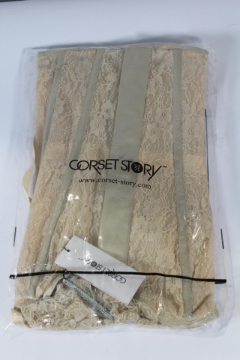 Corset Story Emmeline Satin and Lace Overbust Corset with One Shoulder Detail in Champagne, Size UK 32.