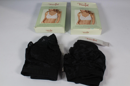 Two Doreen Delicate Non Wired Black Bras Sizes 1 x 38 DD, 1 X 40 B, Boxes Damaged.