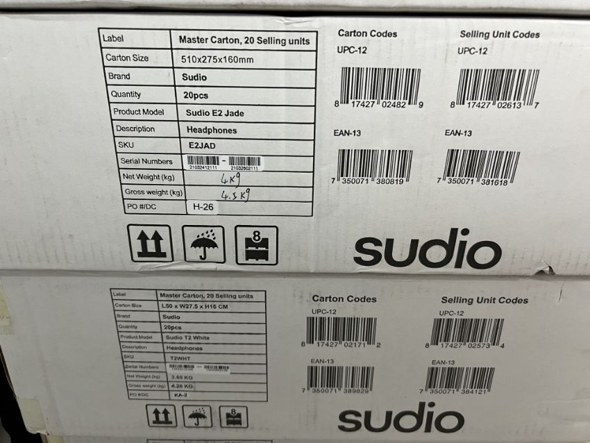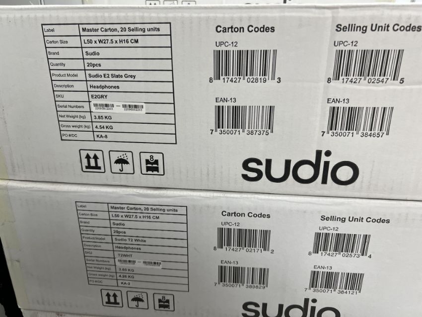 A large quantity of Sudio wireless earbuds (Aprox. 400 pairs. Assorted models. Customer returns, some items faulty) (Sold as seen)