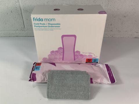 Six boxes containing two packs of Frida Mom 2 in 1 Cold Pads + Disposable Postpartum Underwear. As New (each pack contains 8 ice pads and 2 disposable underwear).