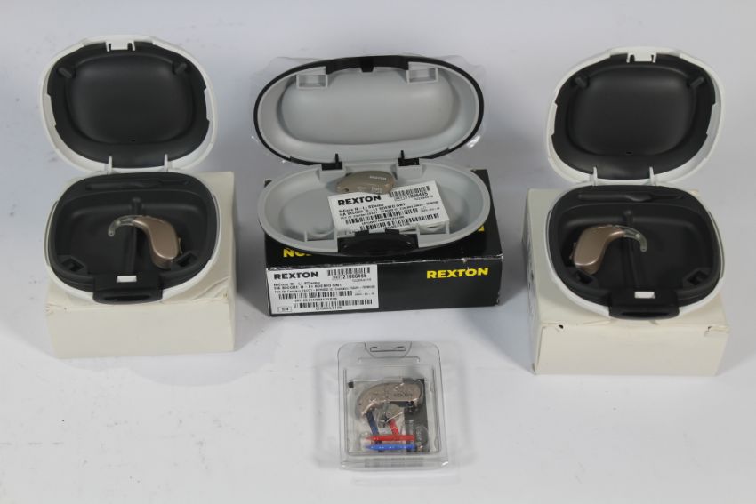 Four Hearing Aids to include Two Oticon Engage Hearing Aids, A Oticon Real 2 Minirite R and A Rexton BiCore R-Li SDemo. As New, Boxes Unsealed.