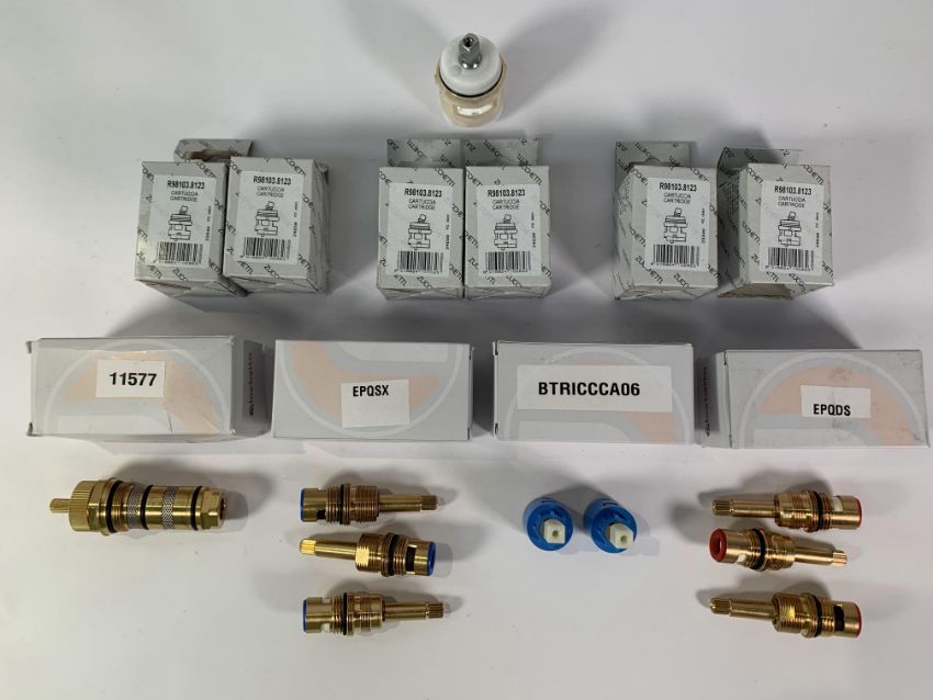 Mixture Of Cartridges To Include Six Zucchetti 38mm Mixer Tap Cartridges (R98103.8123) And Four Various Barbetta Ricambi Bagno Items BTRICCCA06/EPQDS/11577/EPQSX. Boxed As New.
