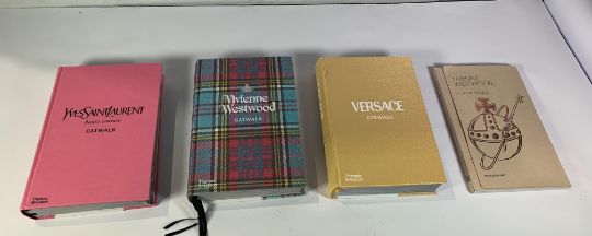 Vivienne Westwood Catwalk Fashion Collection Hardback Book (Pre-owned), Versace Catwalk The Complete Collection Fashion Book (Pre-owned), Yves Saint Laurent Haute Couture Catwalk The Complete Collection 1962 - 2002 and a Vivienne Westwood Fashion Unfolds Book (Pre-owned).