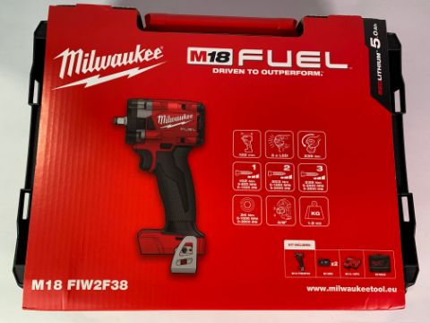 Milwaukee 18V Cordless Impact Wrench M18 FIW2F381, Including 1x Kitbox, 2x Batteries M18B5, 1x Charger M12-18FC. New