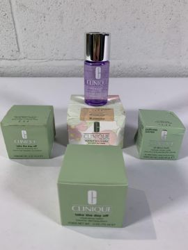 Clinique Beauty items to include Blended Face Powder, Charcoal Cleansing Balm, Puffiness Pouches and Makeup Remover. Boxes are a little creased.