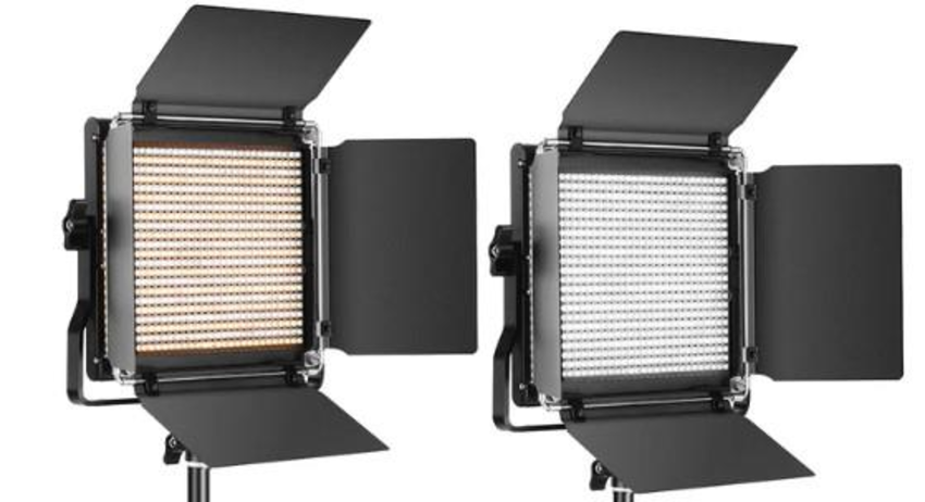 Two Neewer 660 Pro II RGB 360 Smart Phone Control Panel Lights with Power Adapters and Carry Case. Item/Bag has a few light marks. Tripods not included. Turns on but not tested further. Pre-owned.
