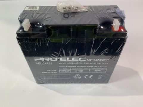 PRO ELEC PEL01438 18Ah 12V AGM Lead Acid Battery. Sealed. As New.