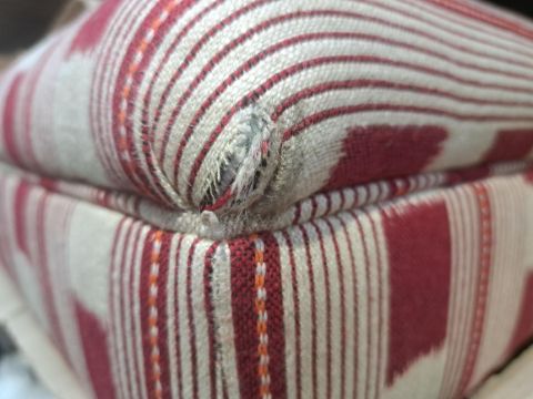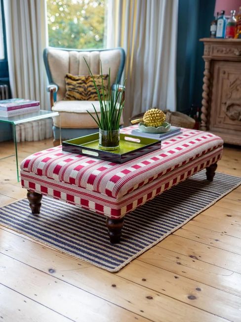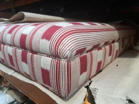 Bryher Classic Ottoman in Christopher Farr Lost and Found Red 142cm X100cm. Minor damage to corner - please see additional images.