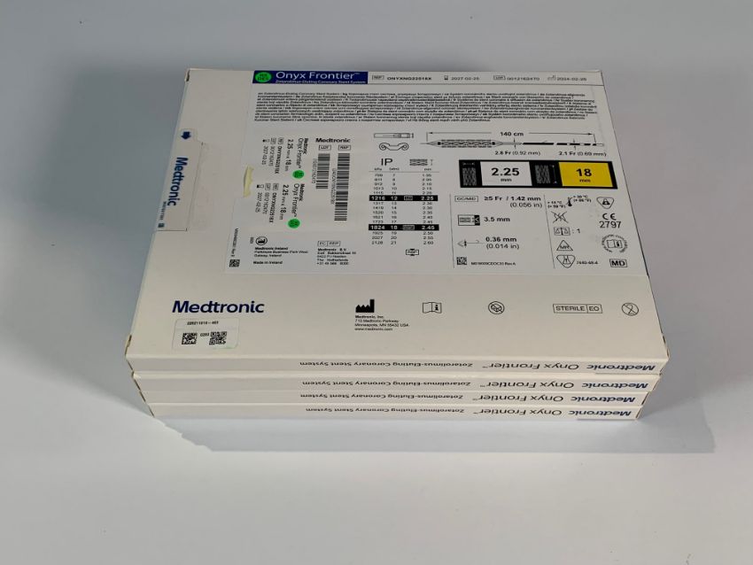 Four Medtronic, Onyx Frontier Zotaroimus-Eluting Coronary Stent System, 2.0mm x 8mm (ONYXNG2008X), 4.0mm x 26mm (ONYXNG40026X), 2.25mm x 34mm (ONYXNG22534X), 2.25mm x 18mm (ONYXNG22518X) New (EXP: 26/12/04)